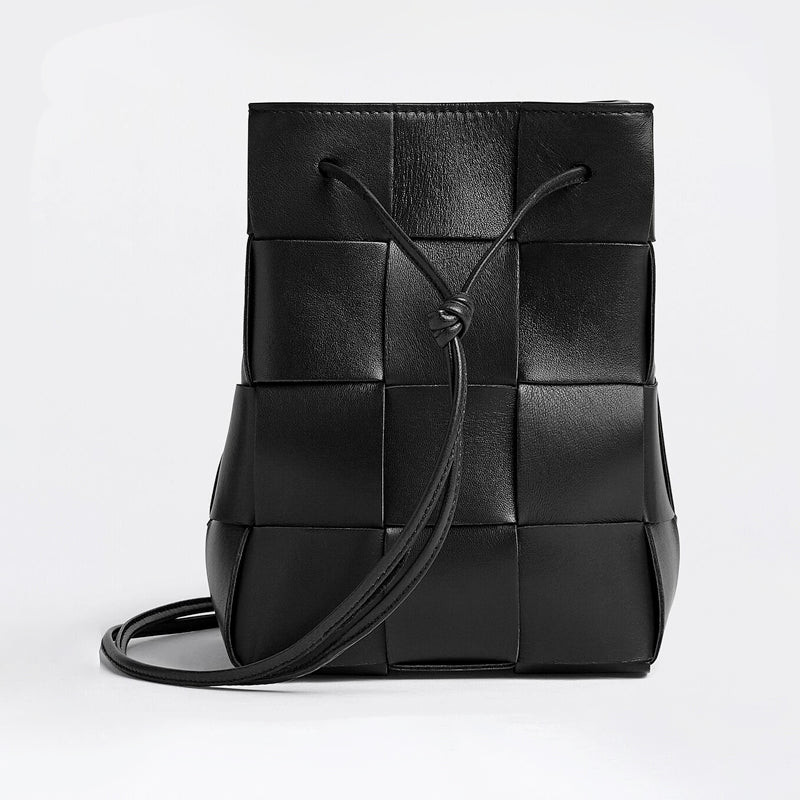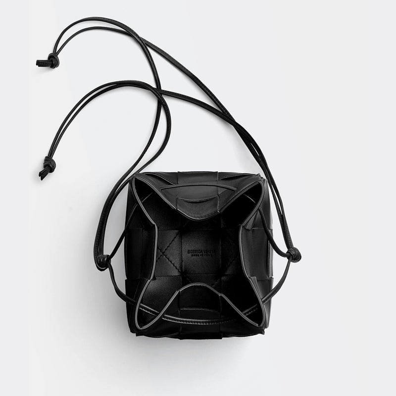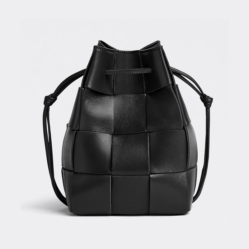 Cross-body bucket bag made from soft lambskin leather using Intreccio craftsmanship
