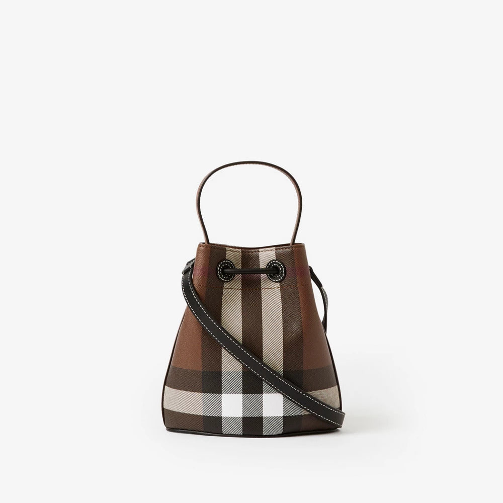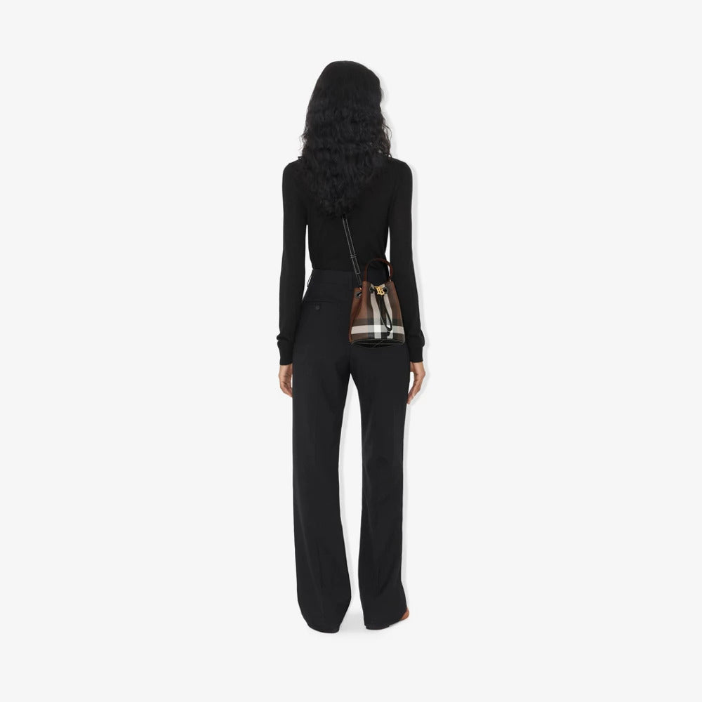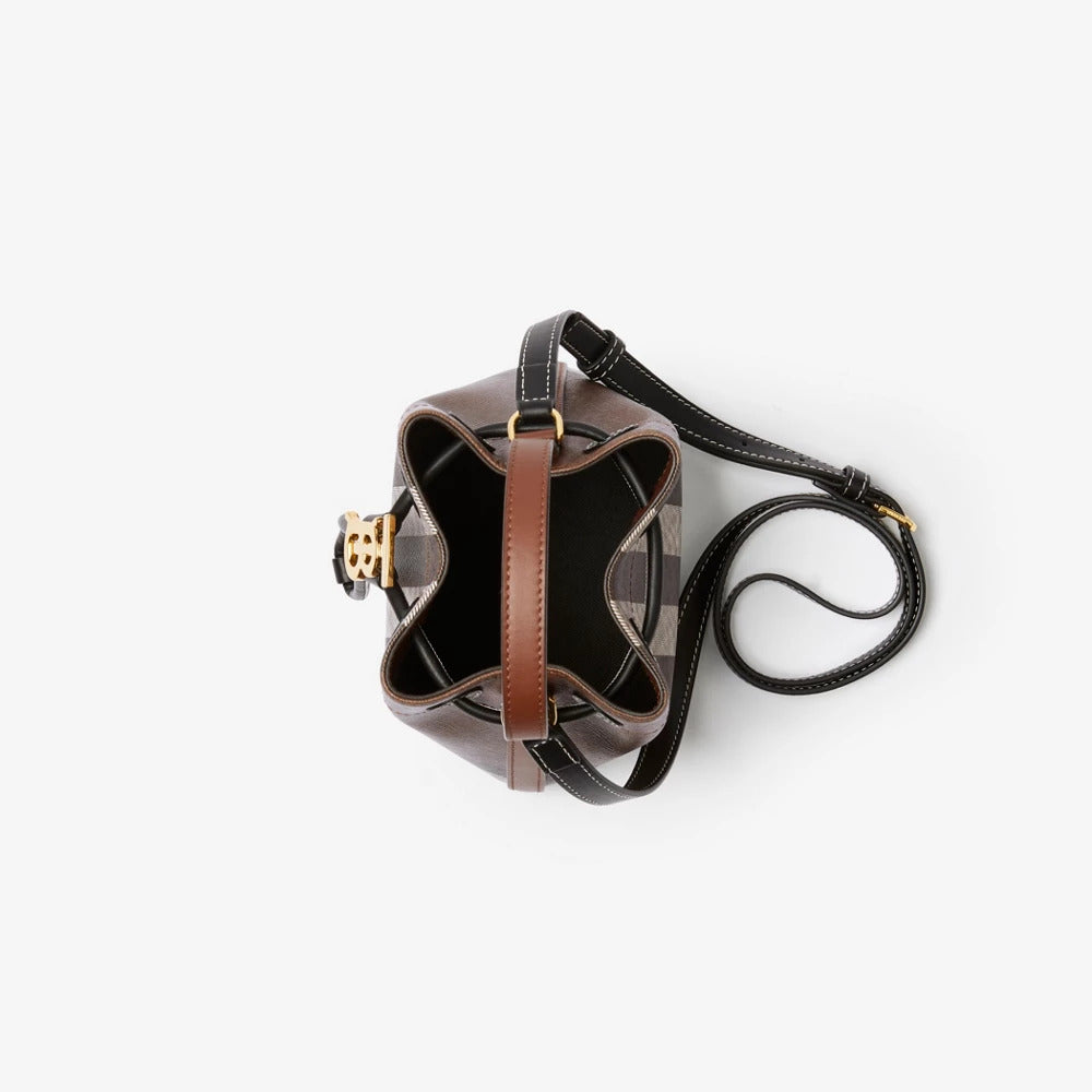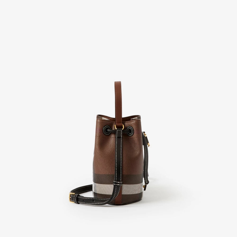 A drawcord bag in Burberry Check and Italian-tanned topstitched leather, adorned with the Thomas Burberry Monogram.