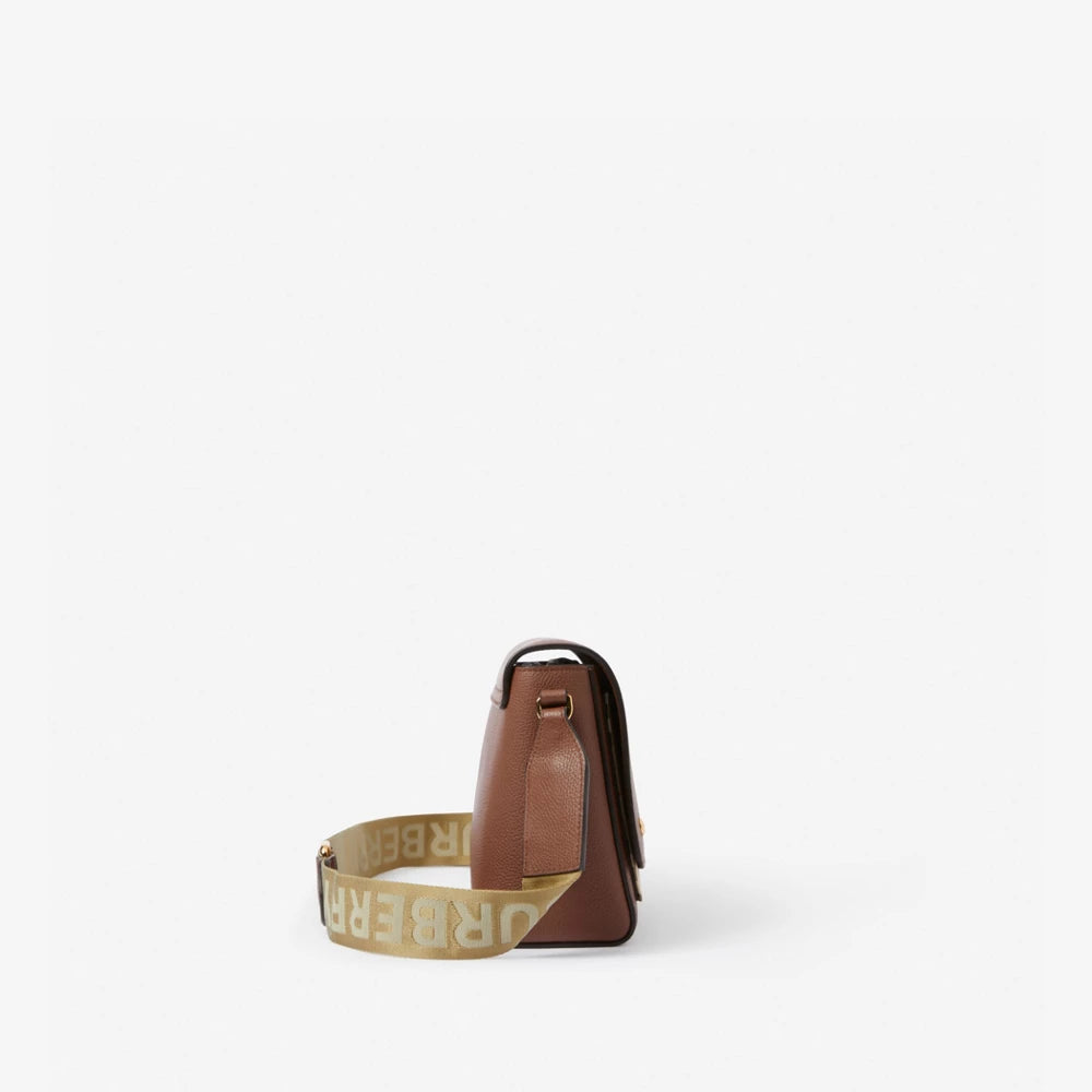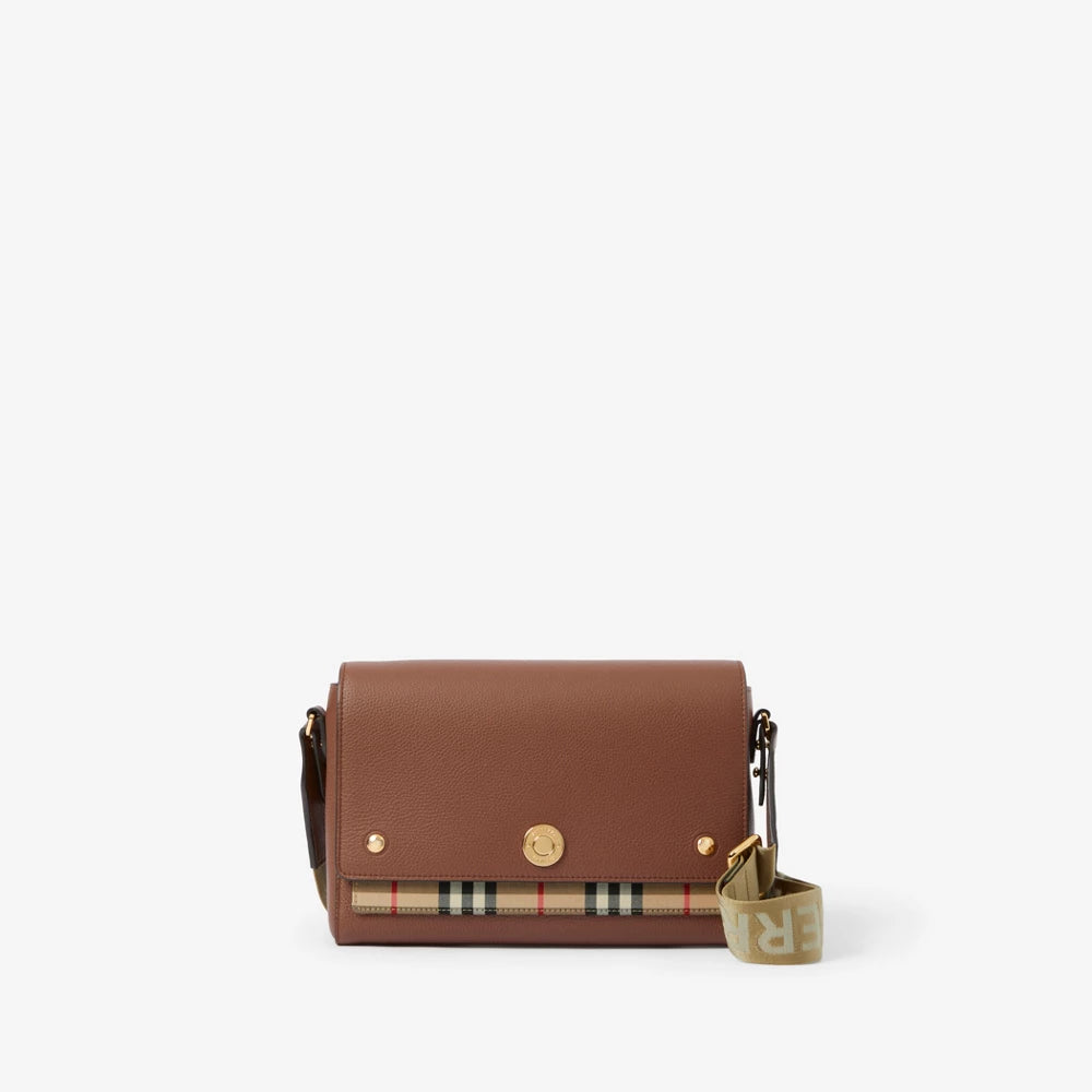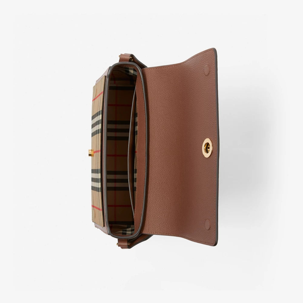 A crossbody bag in grainy calf leather and Burberry Check canvas with a jacquard-woven logo strap.