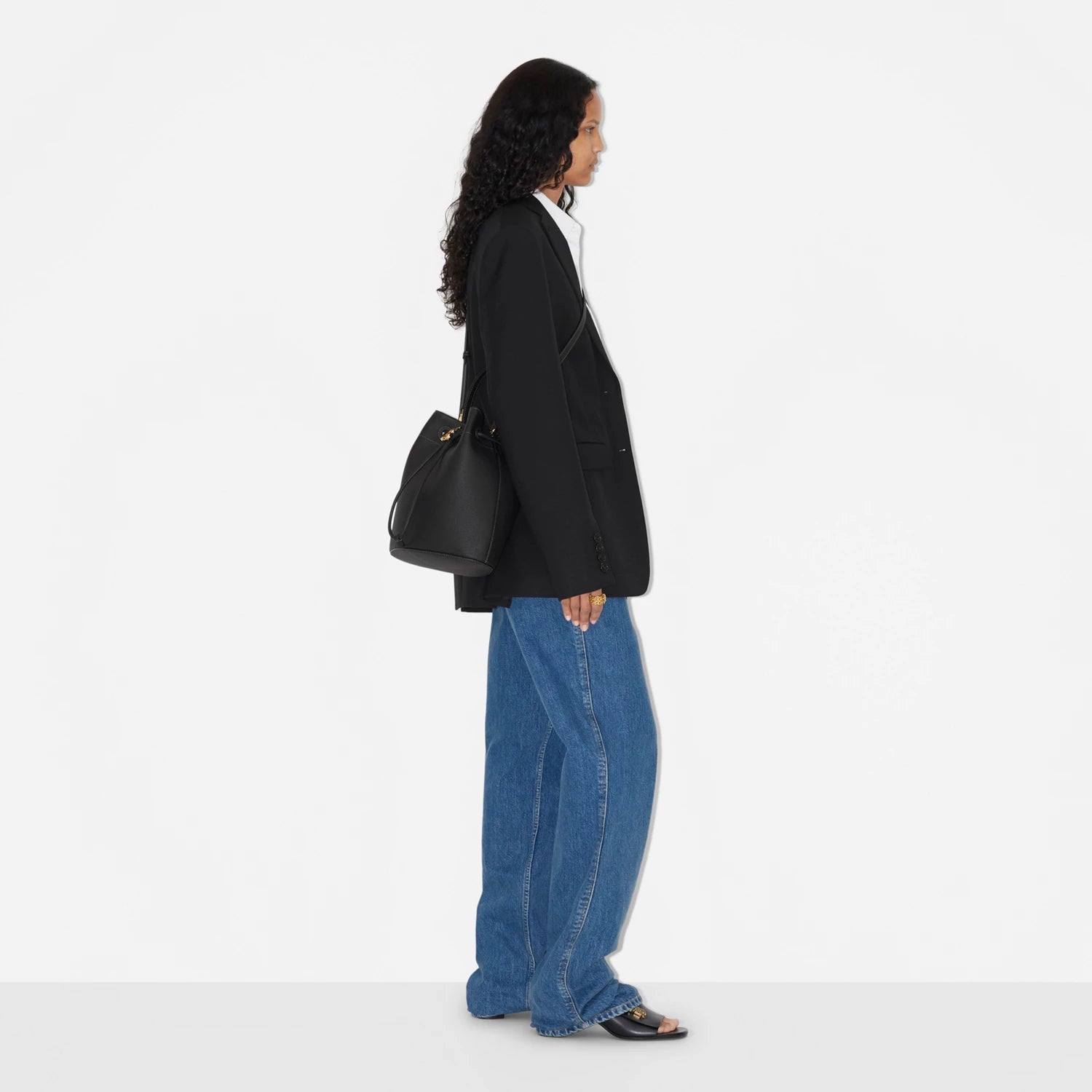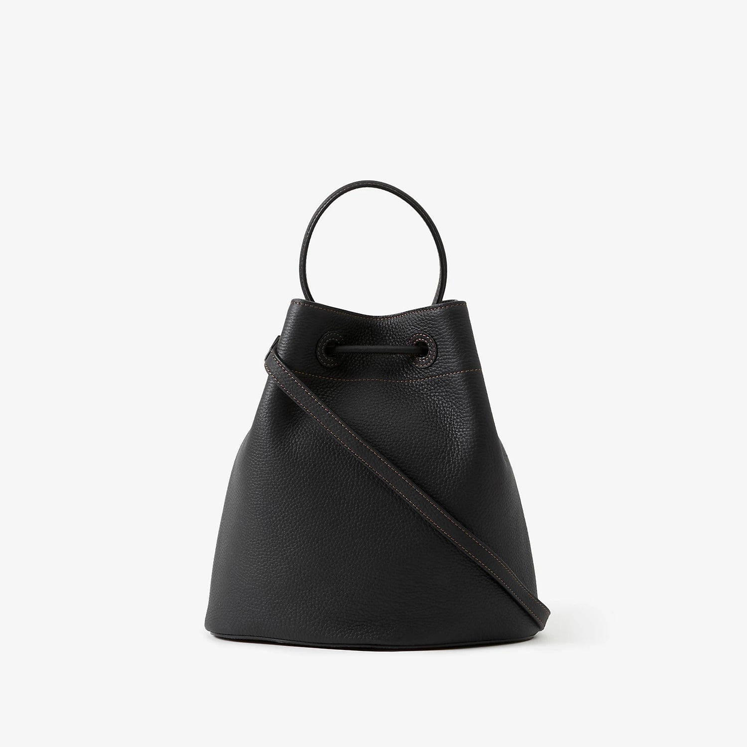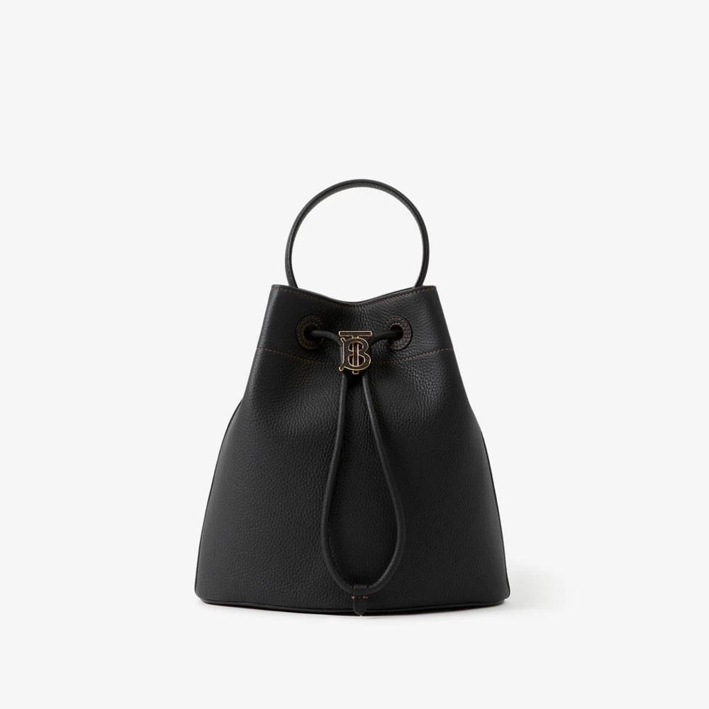 A drawcord bucket bag in Italian-tanned grainy leather, adorned with the Thomas Burberry Monogram.