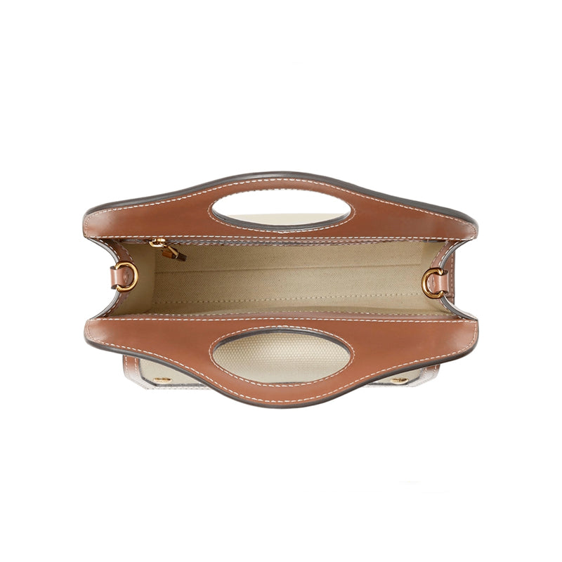 One exterior flap pocket with magnetic closure, one interior zip pocket