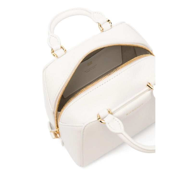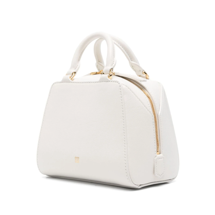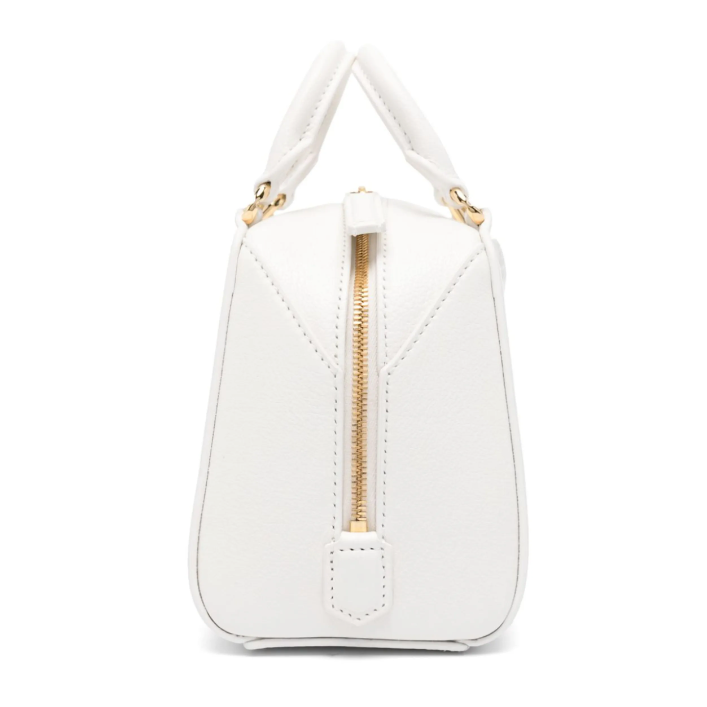 Milk white buffalo leather grained texture logo stamp to the front signature 4G logo stamp two rolled top handles adjustable detachable shoulder strap main compartment internal patch pocket internal logo stamp full lining gold-tone hardware top zip fastening
