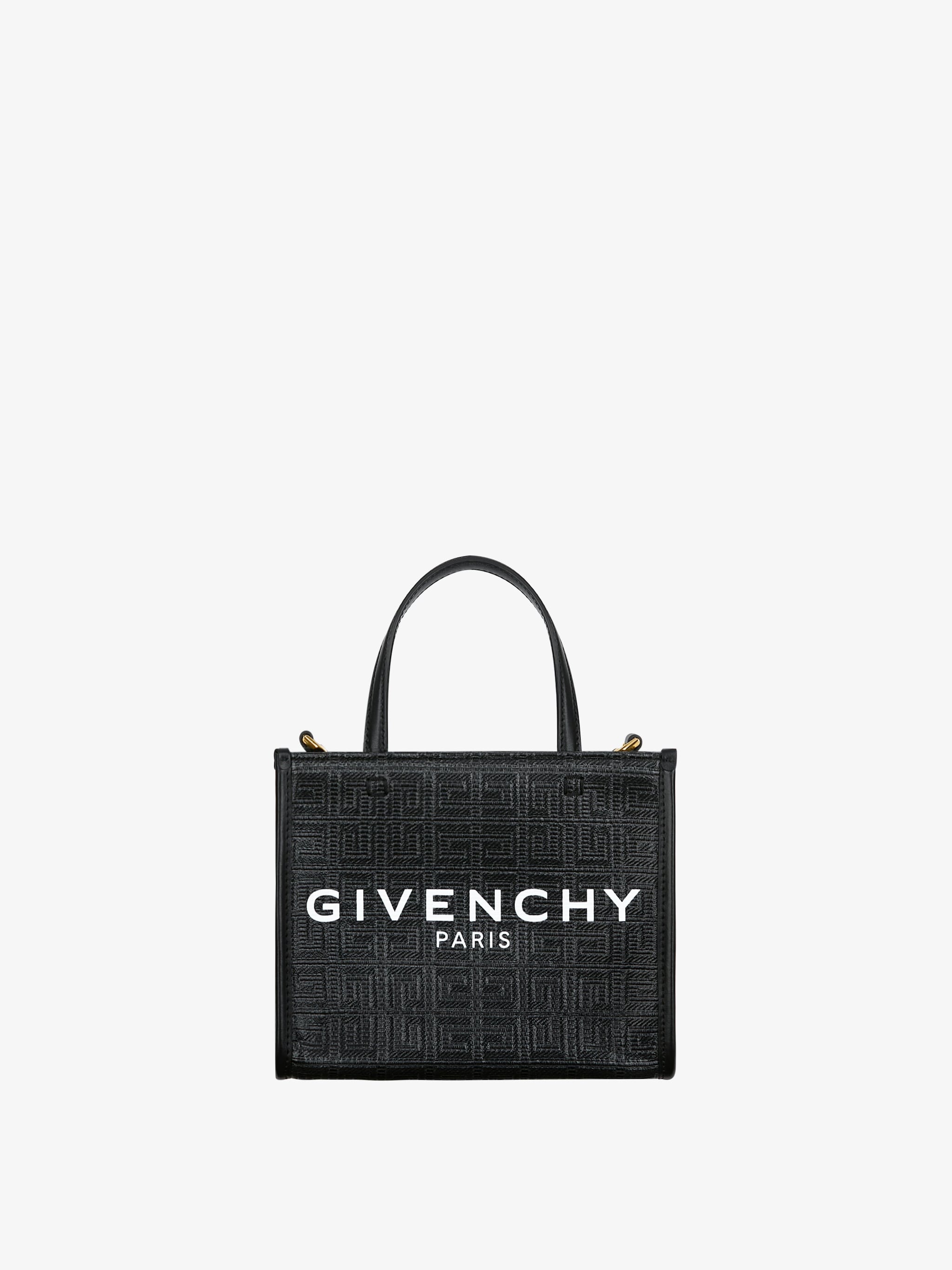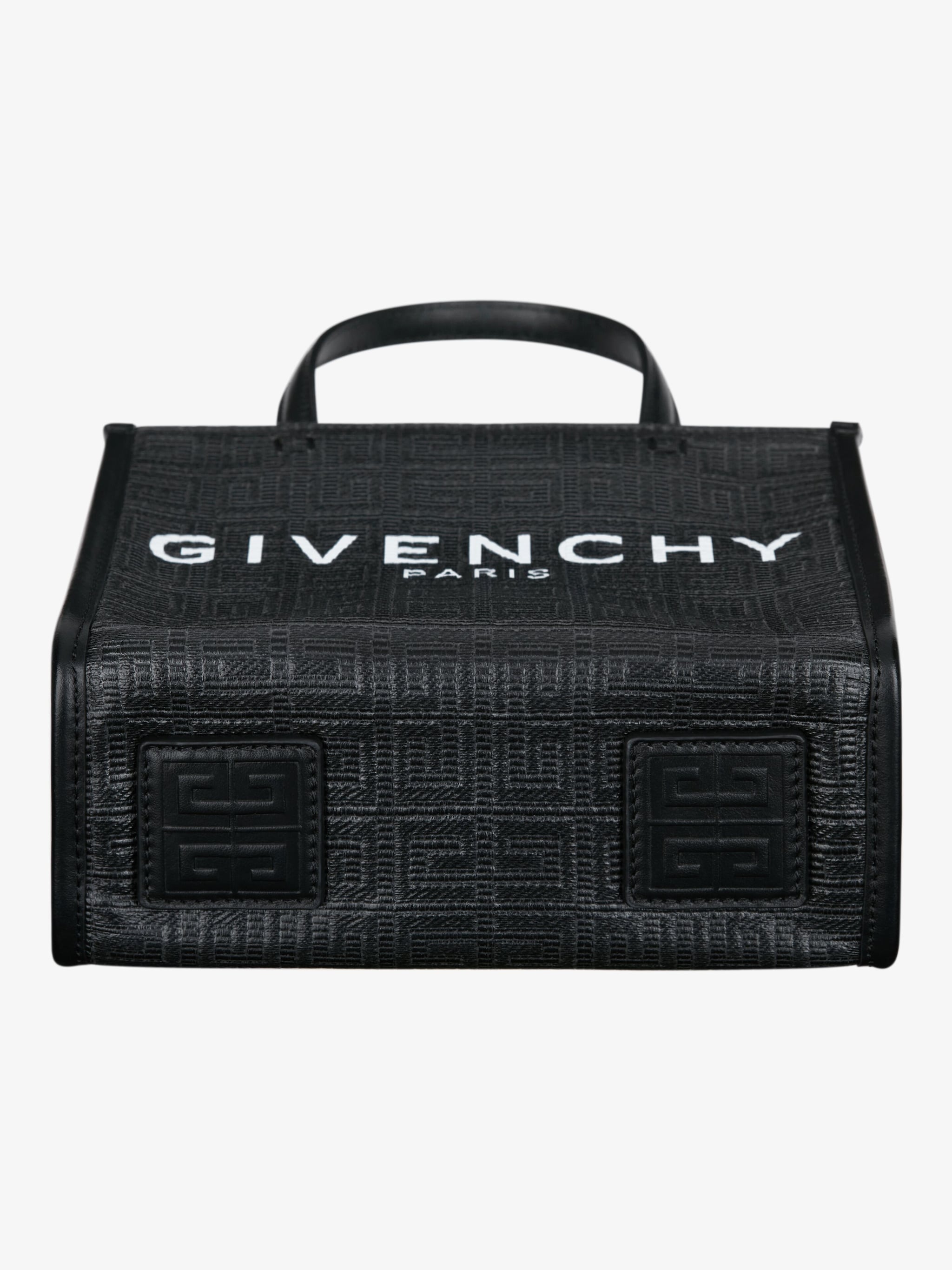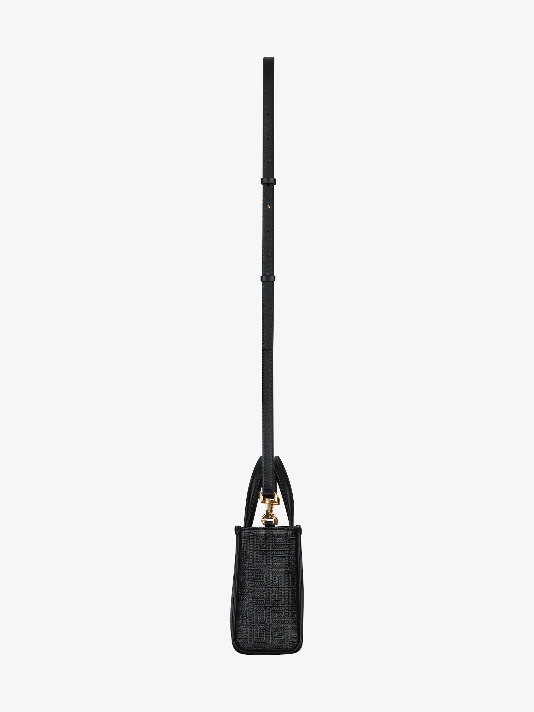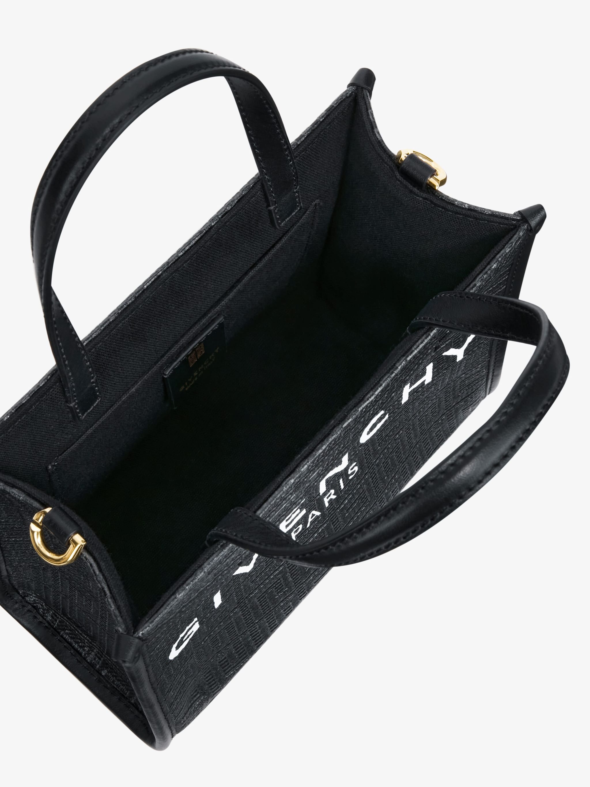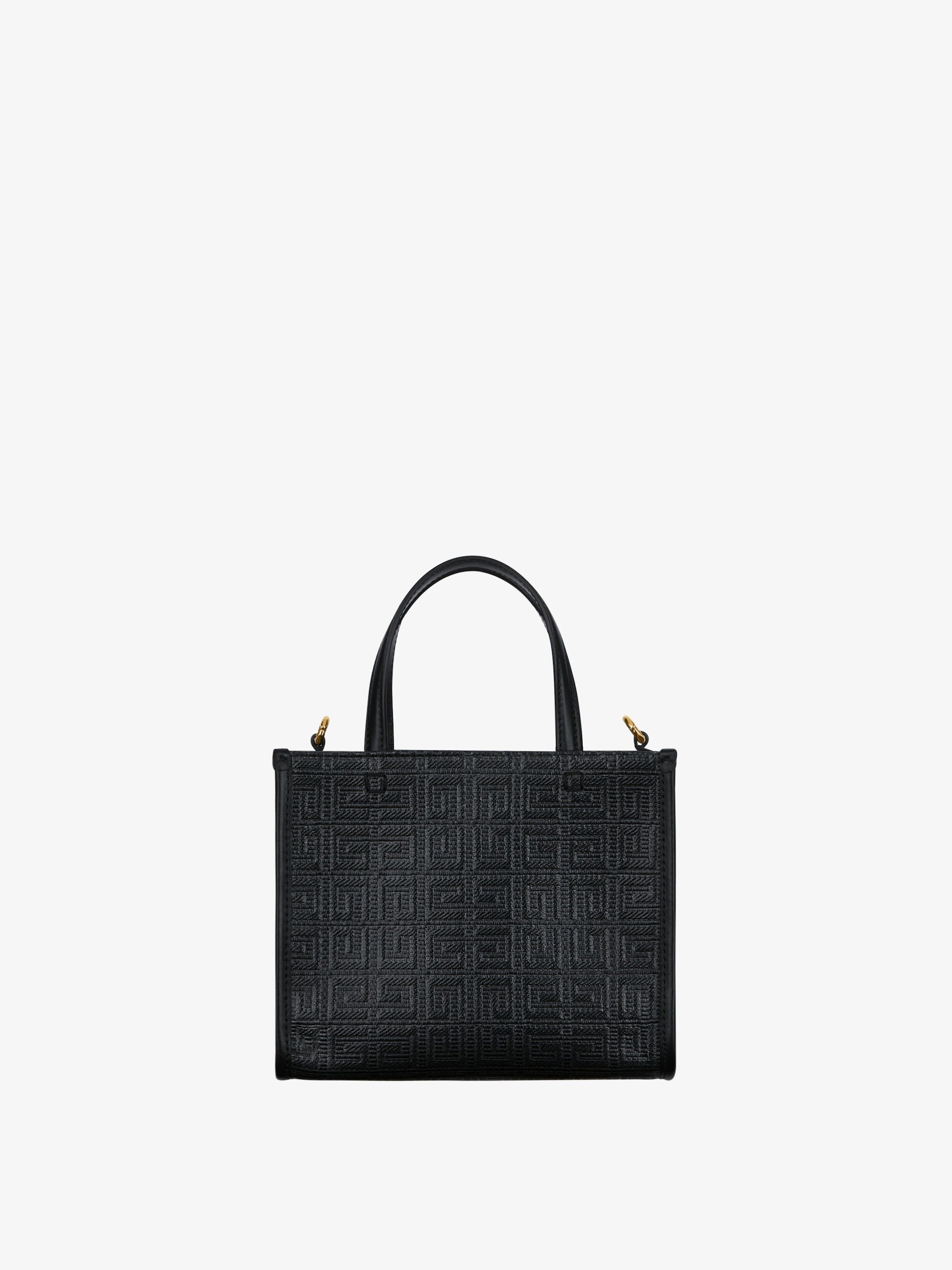 Mini tote bag in coated cotton canvas with all over 4G pattern, to be carried by hand.