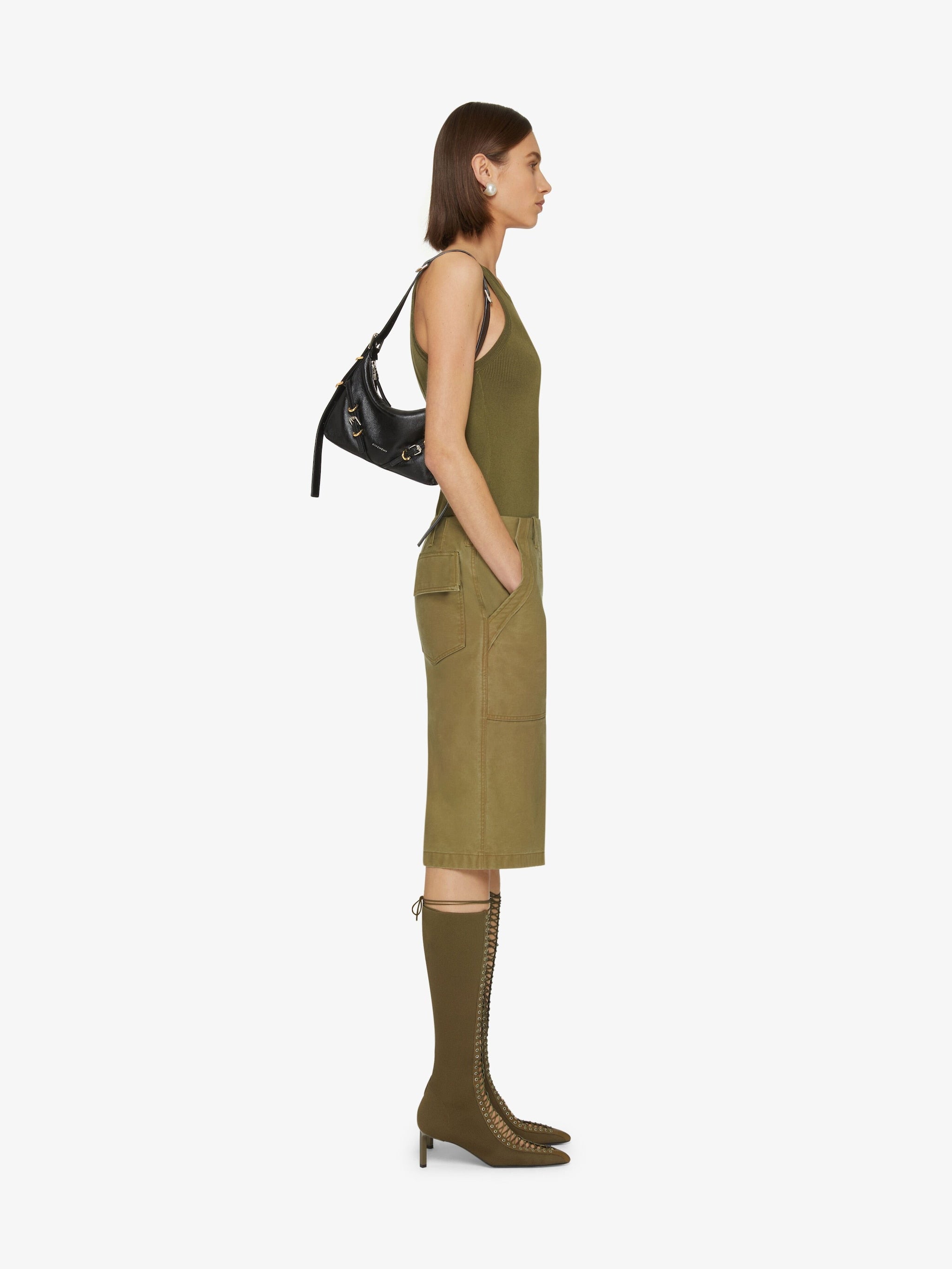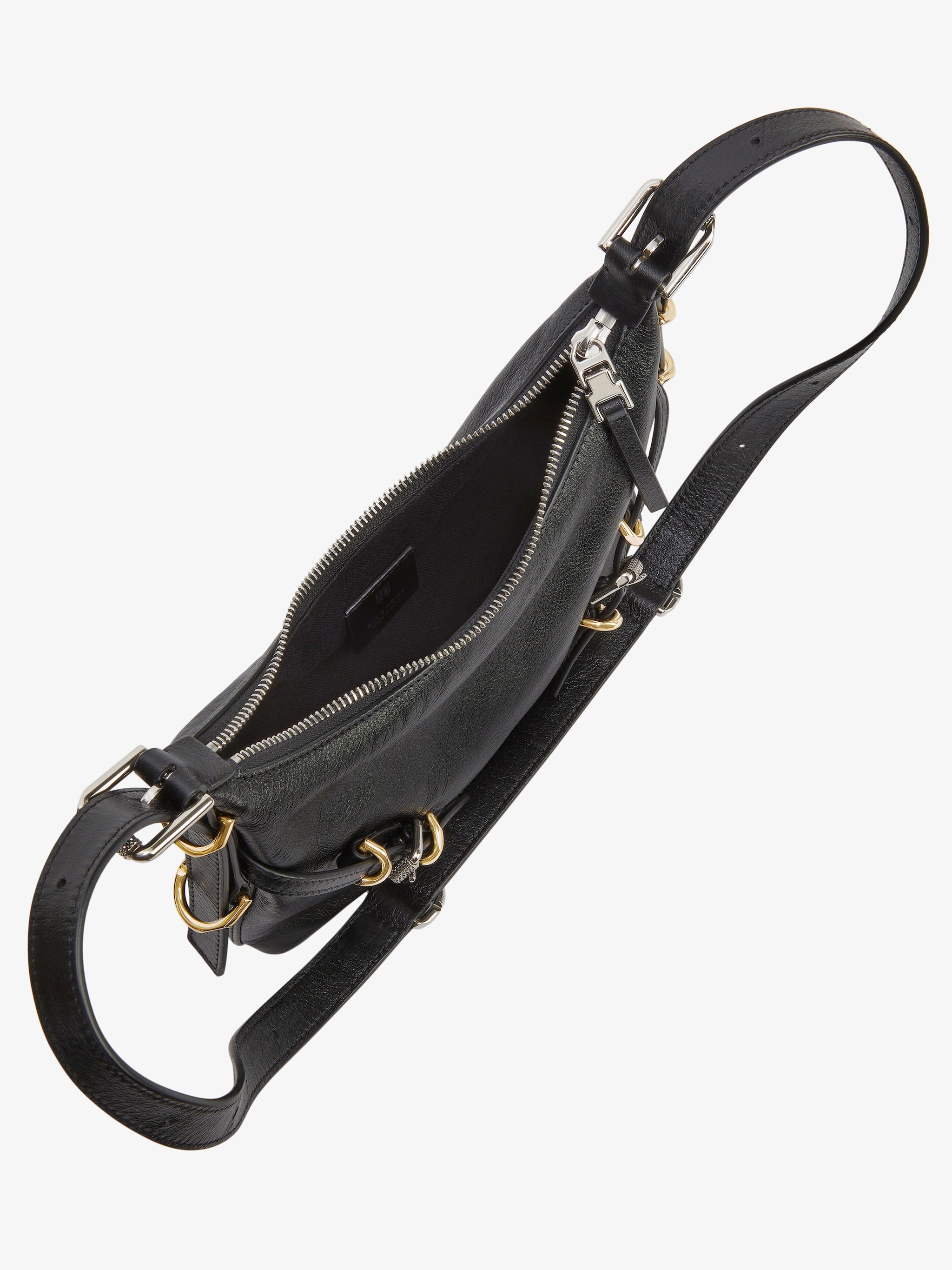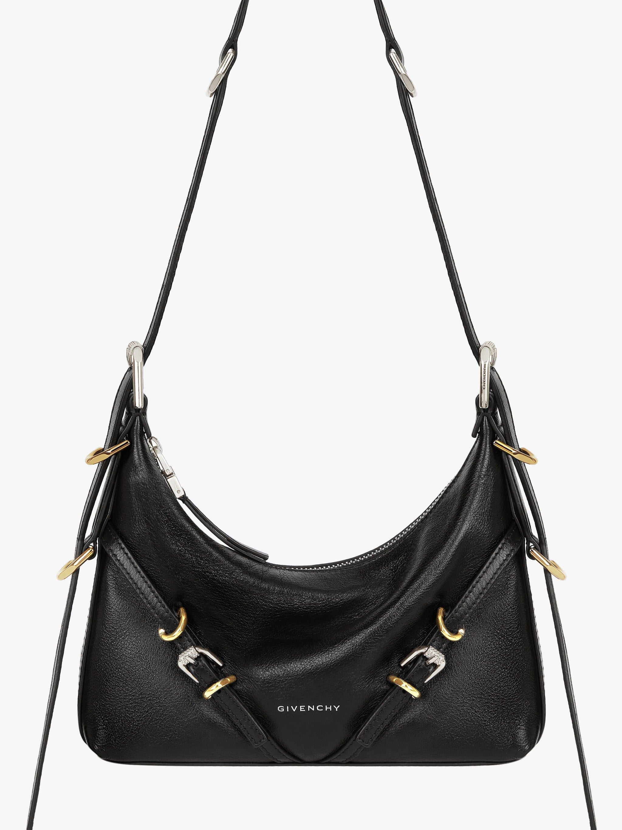 GIVENCHY signature embossed on the front of the bag and on the top of the shoulder strap.