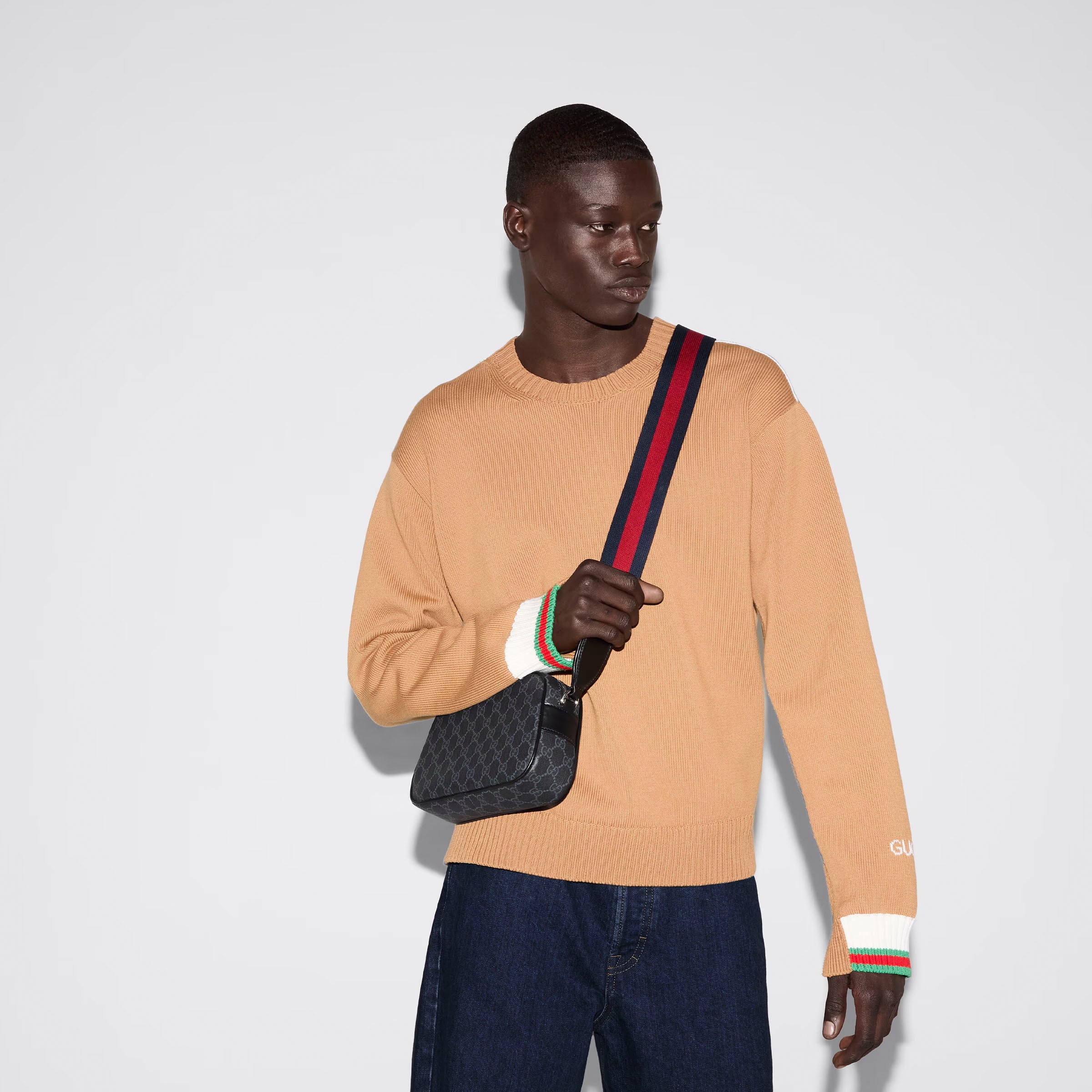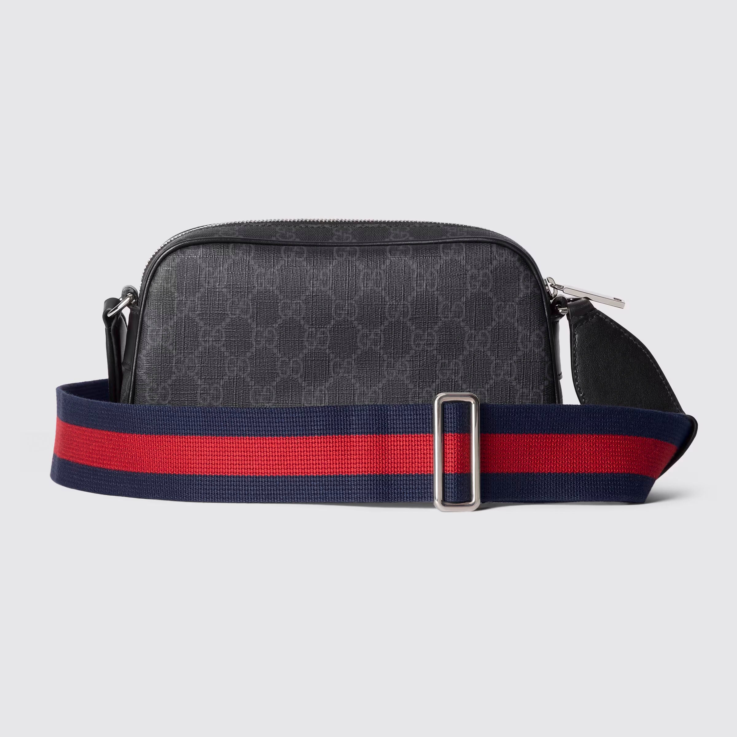 The signature GG Supreme canvas remains an evergreen of the House thanks to its soft and malleable qualities. Crafted from a coated microfiber fabric, here it appears in an all black variation to define this cross-body bag. A tonal leather trim completes the style, while a pop of color appears in the form of the archival Web stripe.