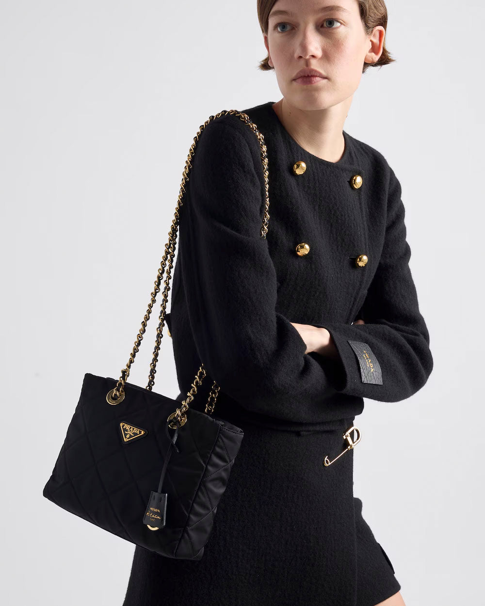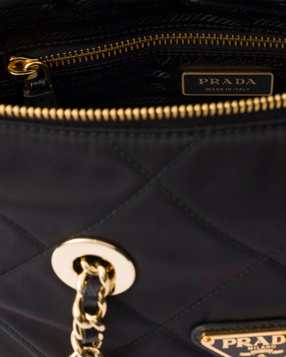Padding and top-stitching enhance the versatile design of this bag made of Re-Nylon, a technical fabric that blends artisan crafting and innovation.