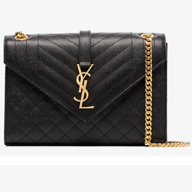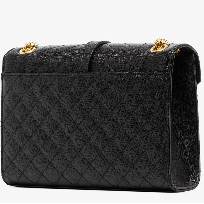 TIMELESS ENVELOPE FLAP BAG IN GRAIN DE POUDRE EMBOSSED LEATHER, FEATURING CHEVRON AND DIAMOND QUILT OVERSTITCHING.