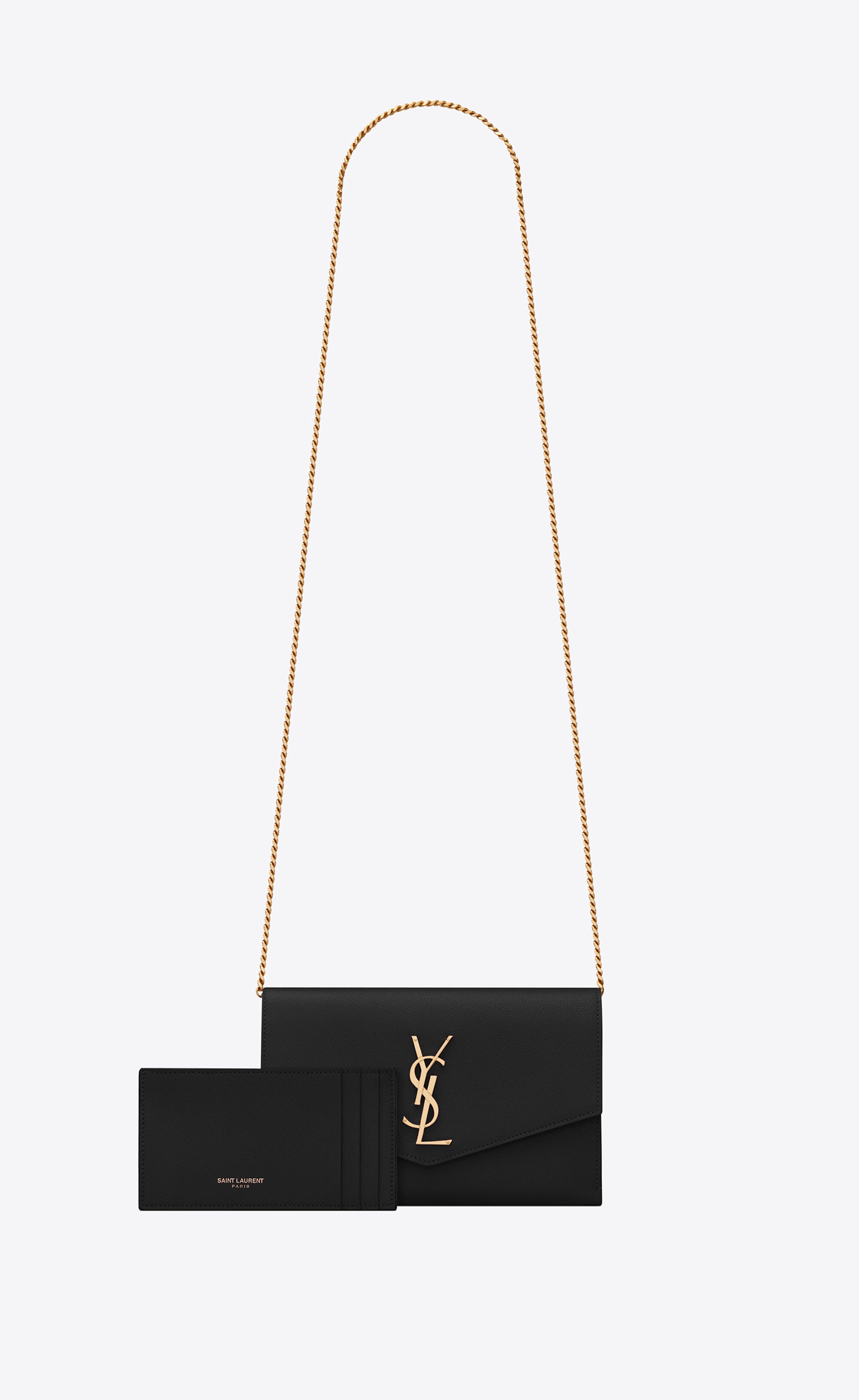 MINI ENVELOPE BAG DECORATED WITH THE CASSANDRE, FEATURING A REMOVABLE CHAIN STRAP FOR SHOULDER OR HAND CARRY AS A CLUTCH. A FRAGMENTS CARD CASE WITH THREE CARD SLOTS IS INCLUDED.