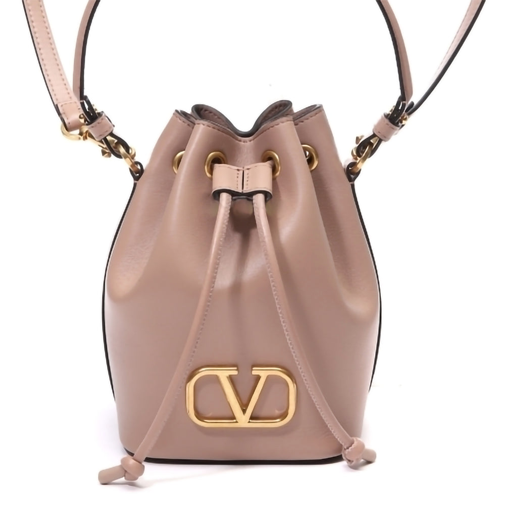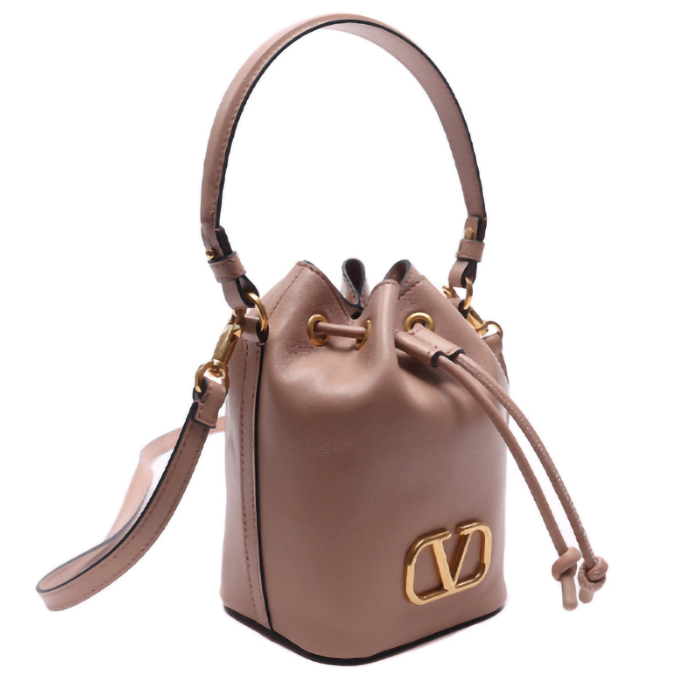 Valentino Garavani VLogo Signature mini bucket bag in Nappa leather. Equipped with a removable shoulder strap and handle, this mini bag can be worn as a crossbody/shoulder accessory or carried as a handbag.